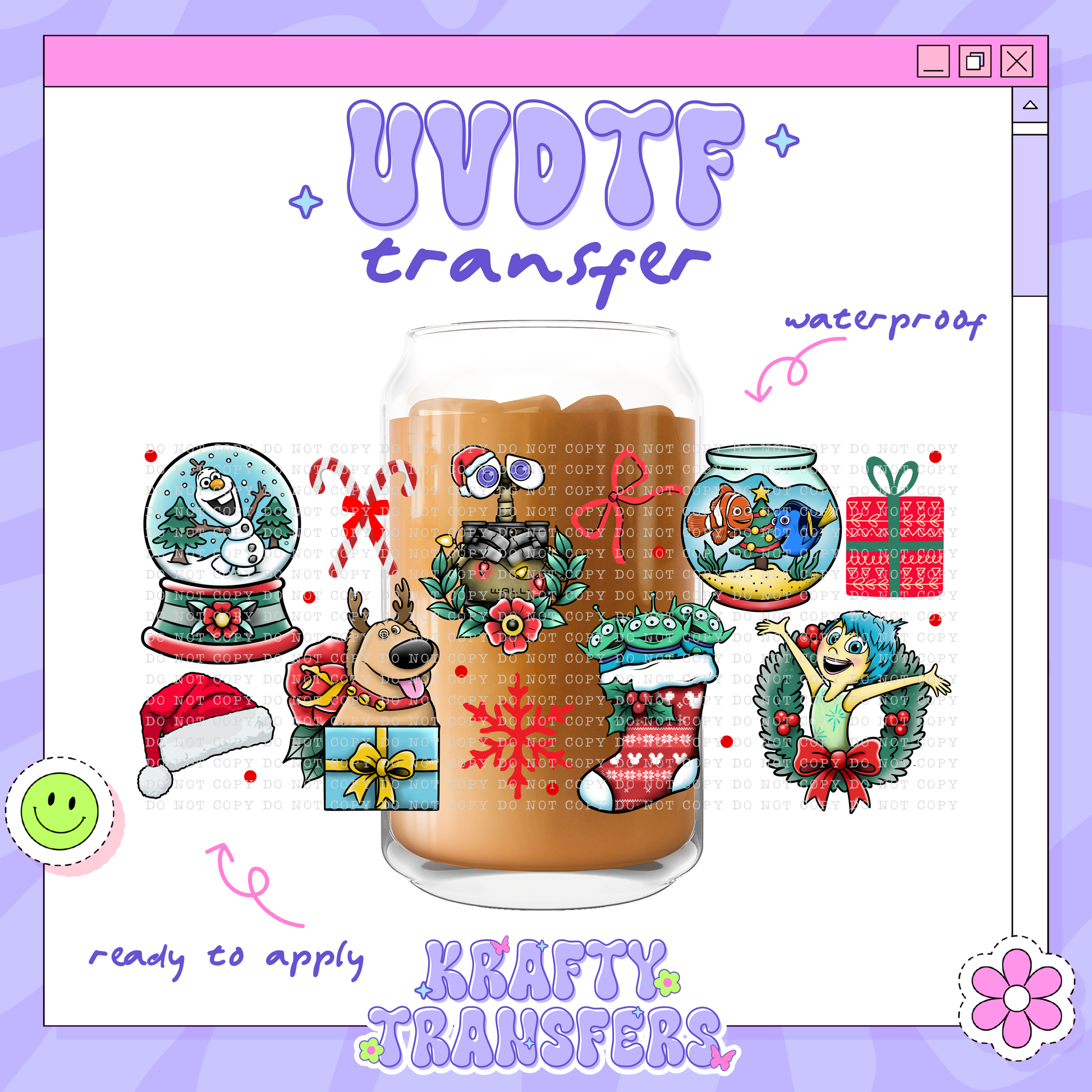 UV DTF wrap designed for 16 oz Libbey Glass Cups, but may also be applied to plastic cups of varying sizes; simply measure and trim off any excess material.