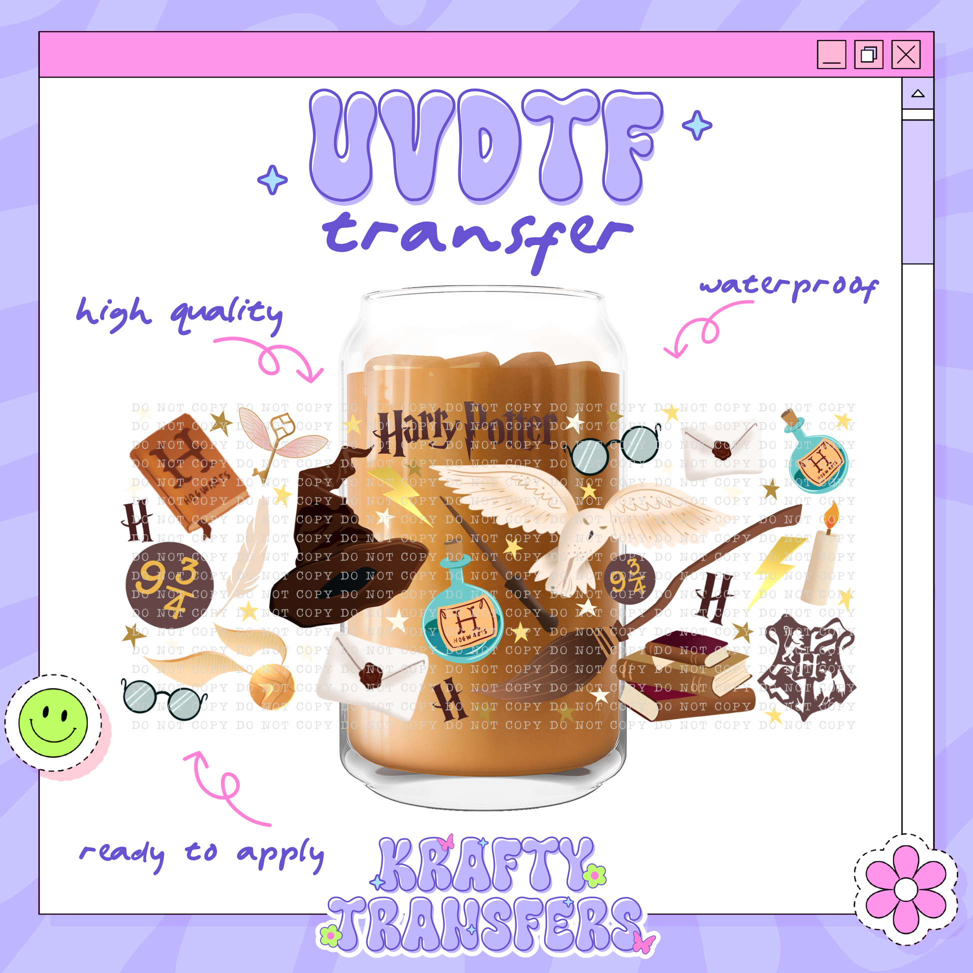 UV DTF wrap designed for 16 oz Libbey Glass Cups, but may also be applied to plastic cups of varying sizes; simply measure and trim off any excess material.