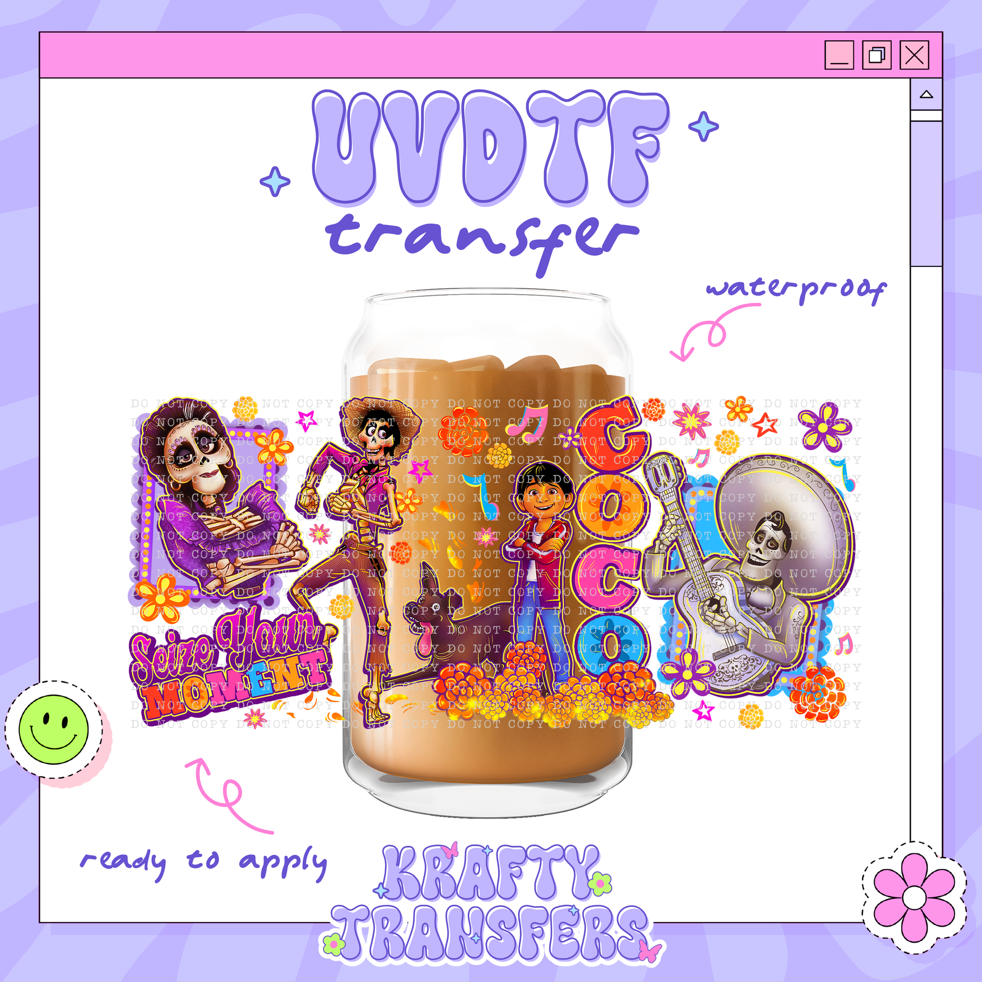 UV DTF wrap designed for 16 oz Libbey Glass Cups, but may also be applied to plastic cups of varying sizes; simply measure and trim off any excess material.