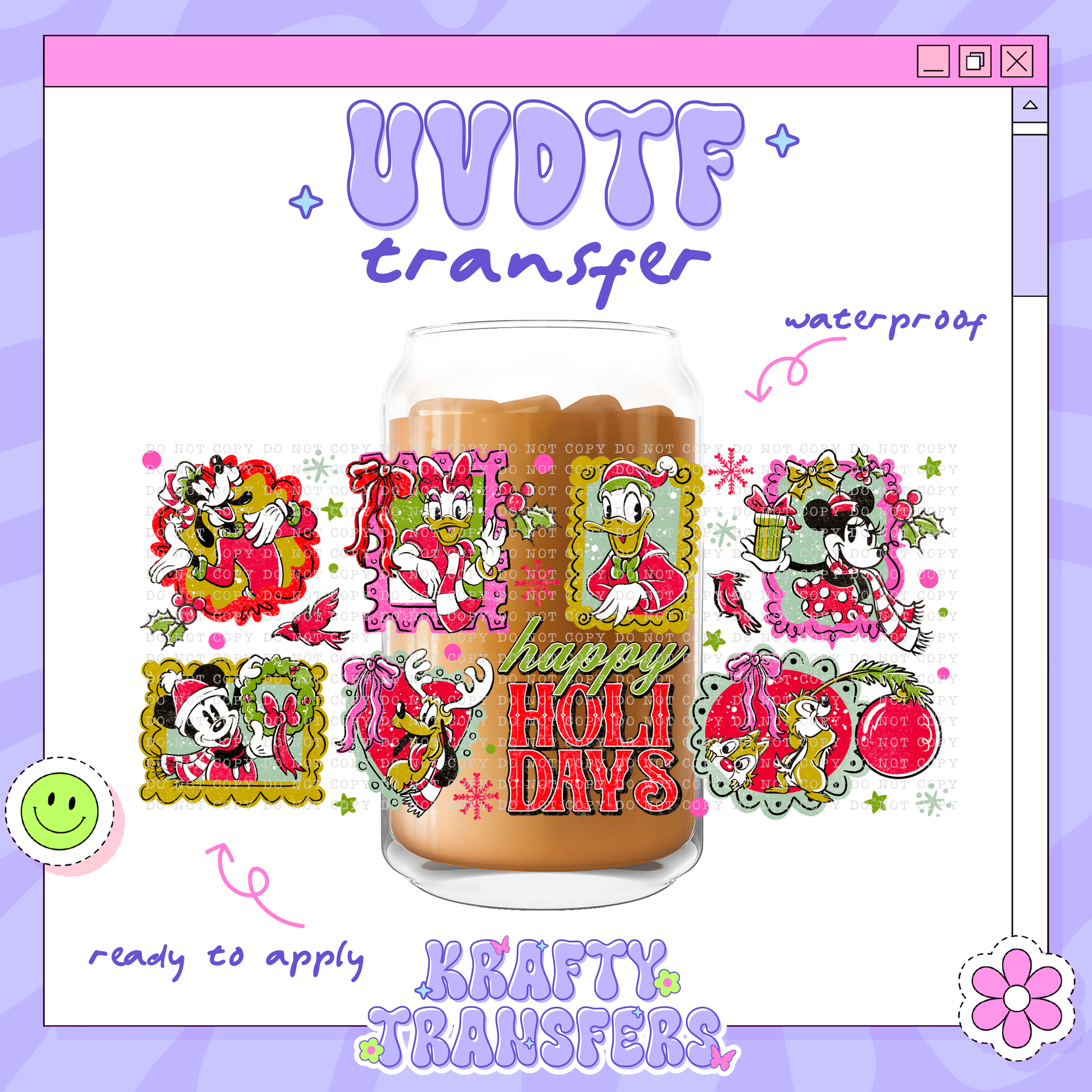 UV DTF wrap designed for 16 oz Libbey Glass Cups, but may also be applied to plastic cups of varying sizes; simply measure and trim off any excess material.